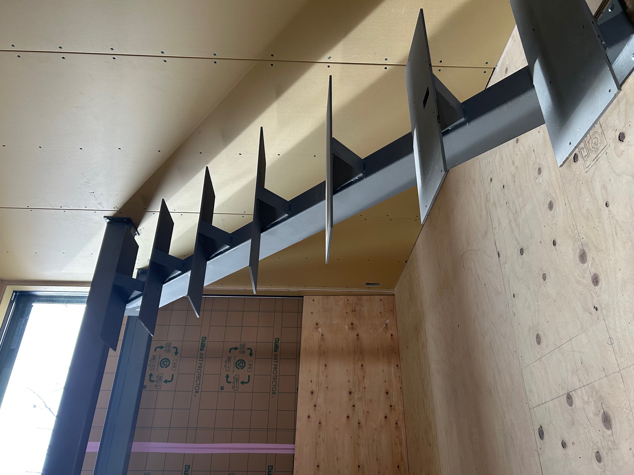 途中から鉄骨階段になる階段と手すりの製作・取付しました。