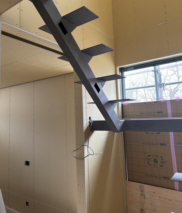 踏板施工後、階段と吹抜けの手すりを設置予定です。