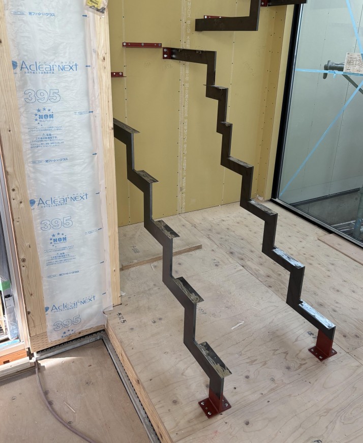 階段はササラ・踏板受けPLのみですので踏板部は大工さんにお願いしてます。
