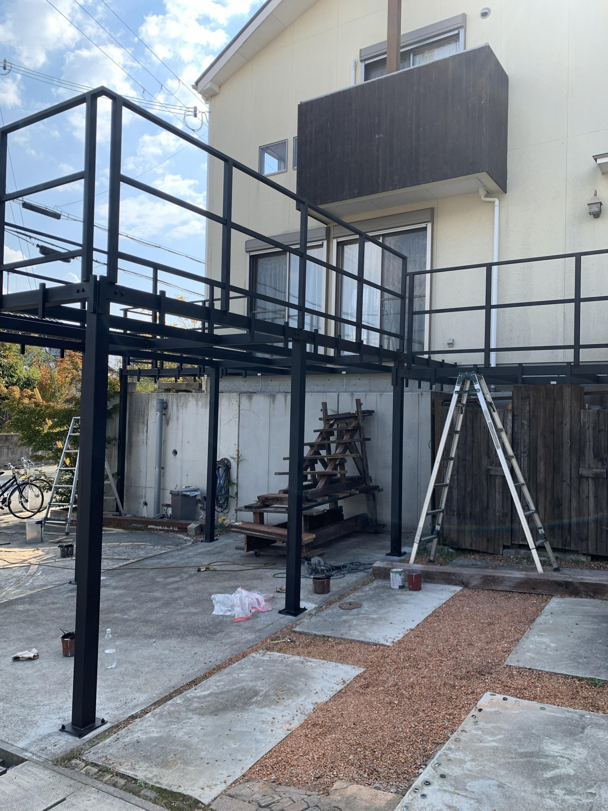 兵庫県 三田市 鉄骨カーポート兼ウッドデッキ下地 |