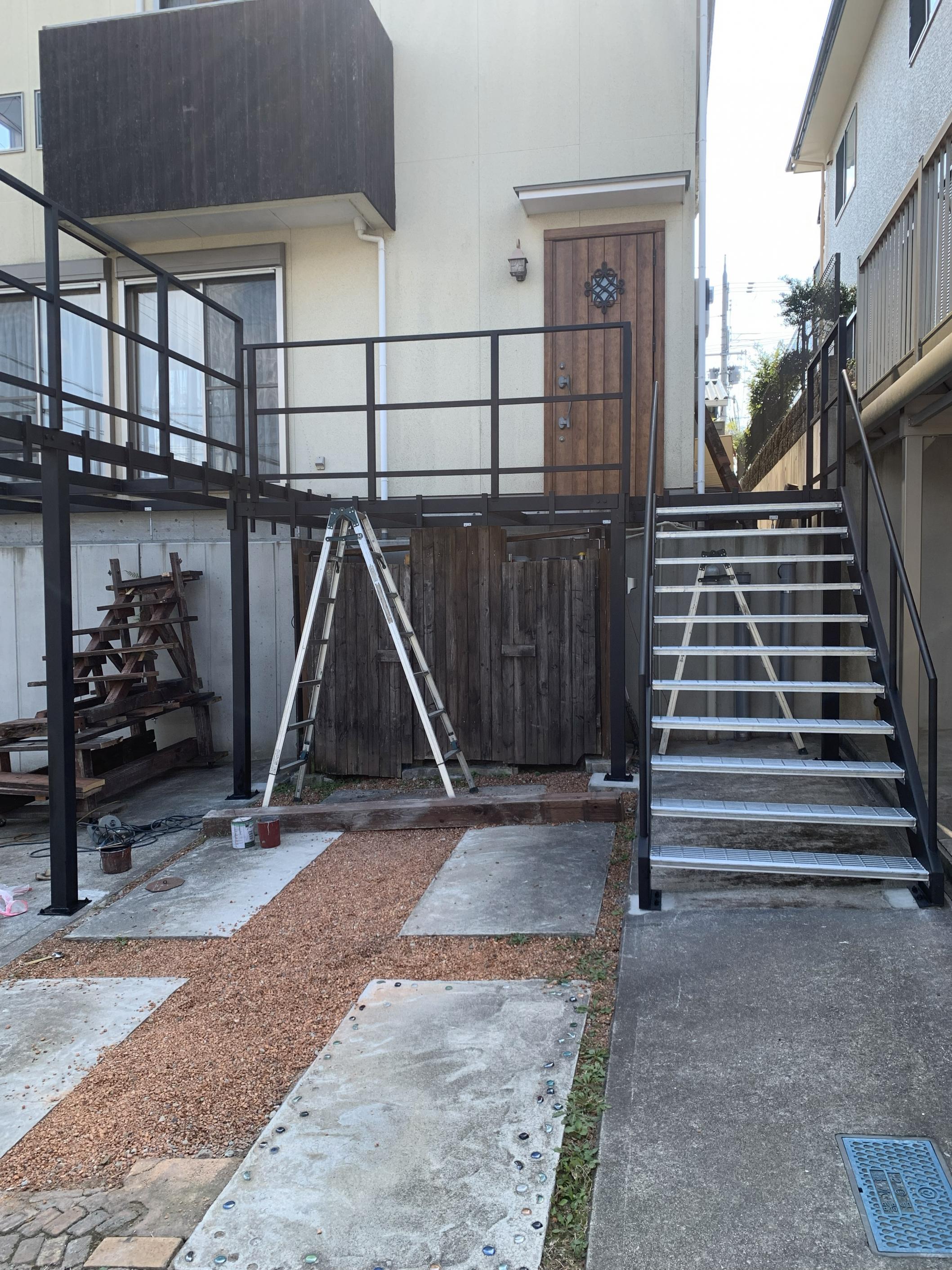 玄関に続く階段・ウッドデッキ下地の施工をさせていただきました。